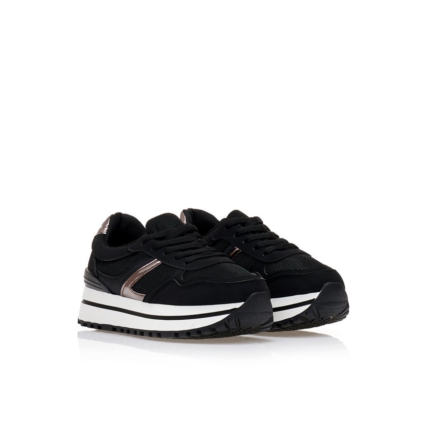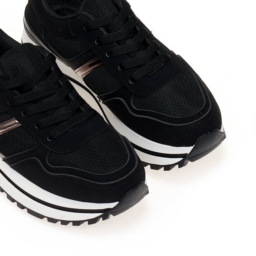 Black faux leather sneakers with anthracite detailsBlack faux leather sneakers with anthracite details