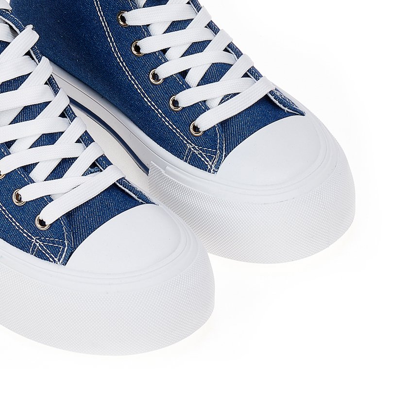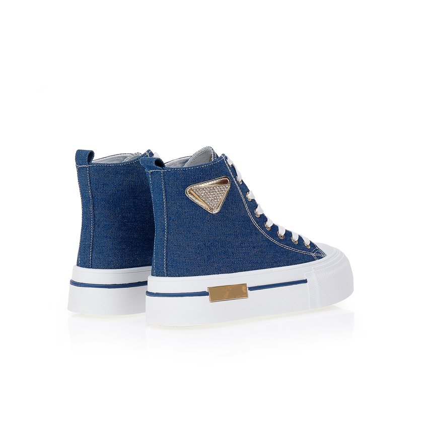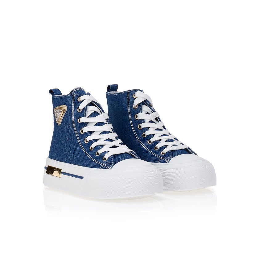 Blue high-top sneakers with gold detailsBlue high-top sneakers with gold details