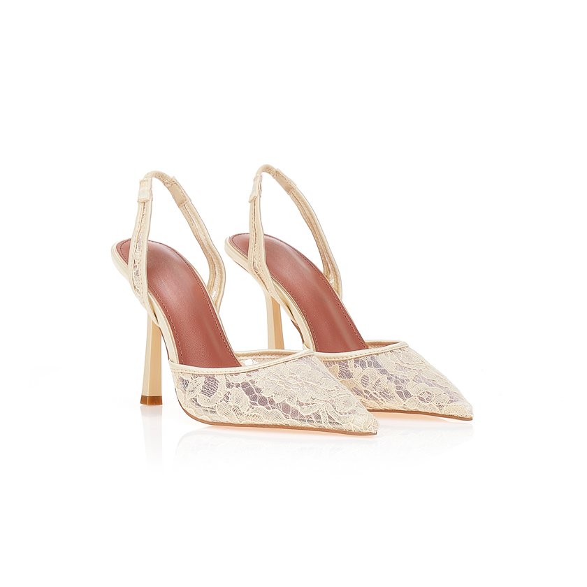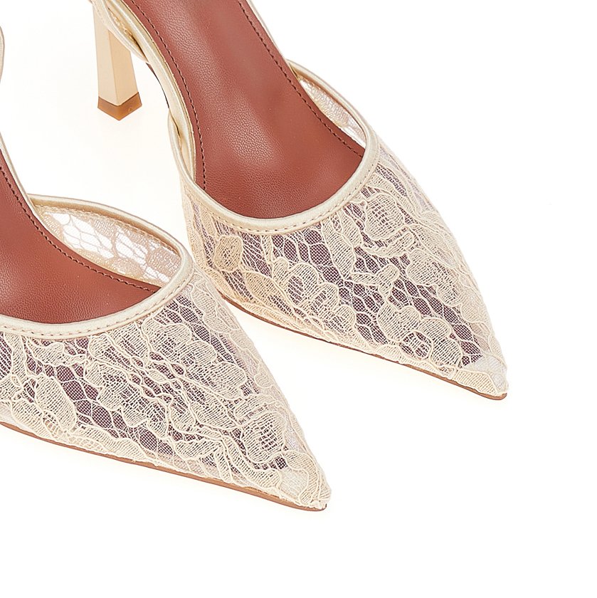 Pointed pumps with lace detail