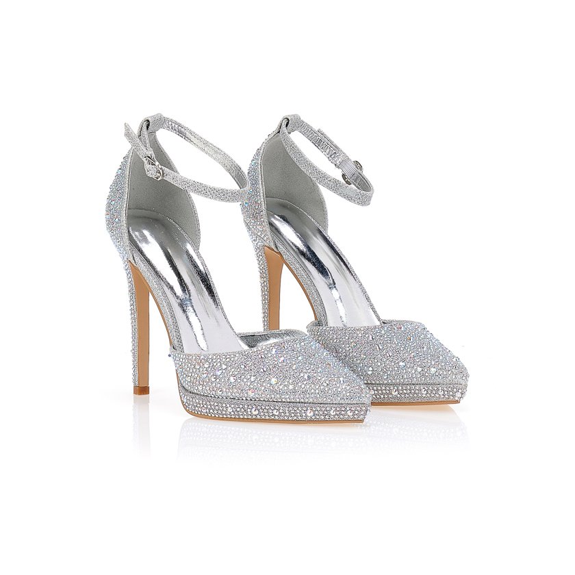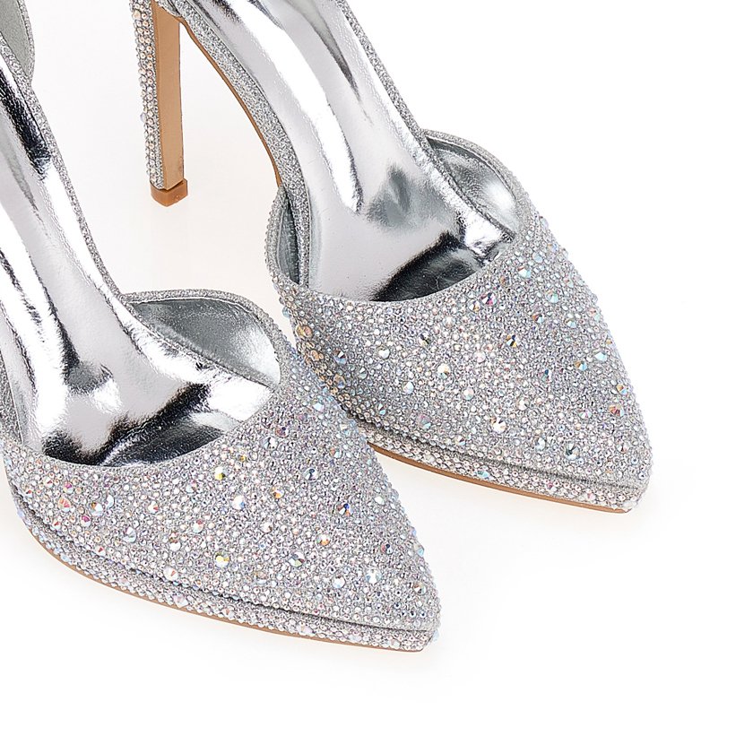 Pointed pumps with rhinestones Silver