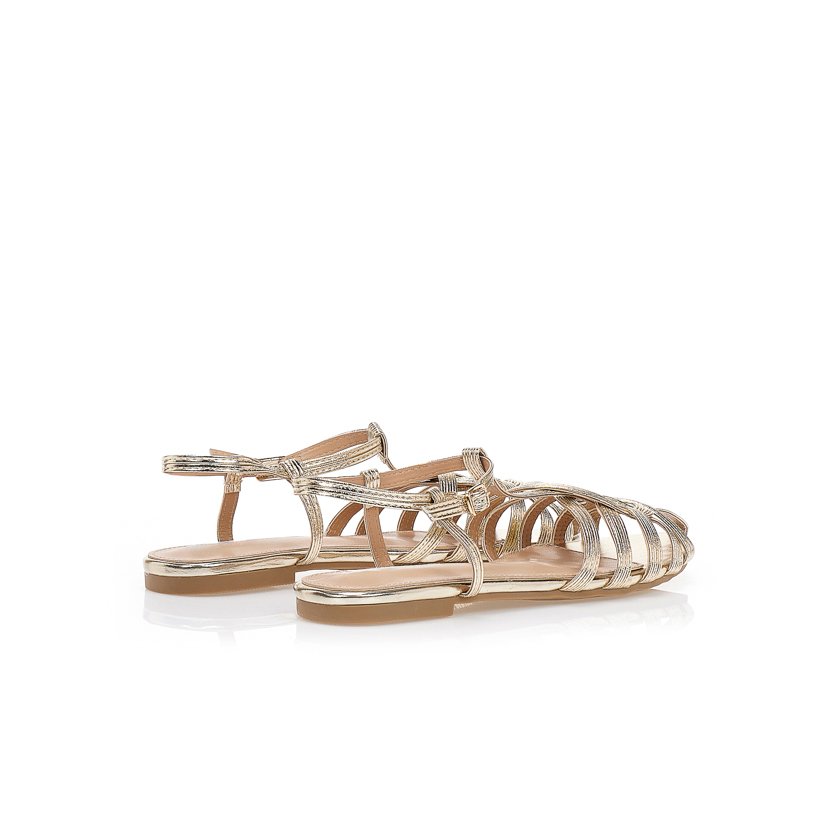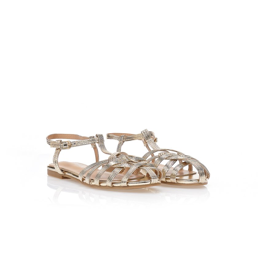 Code: 552372goldProduct type: SandalMaterial: Faux leatherColor: GoldHeel height: 1 cmClosure type: Slip-onSole: High-quality materialDetails: With intricate braided straps