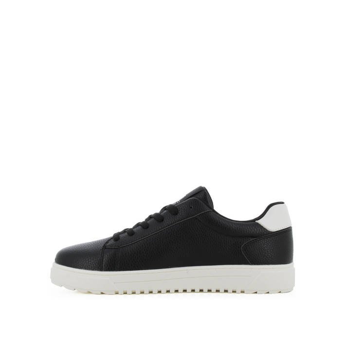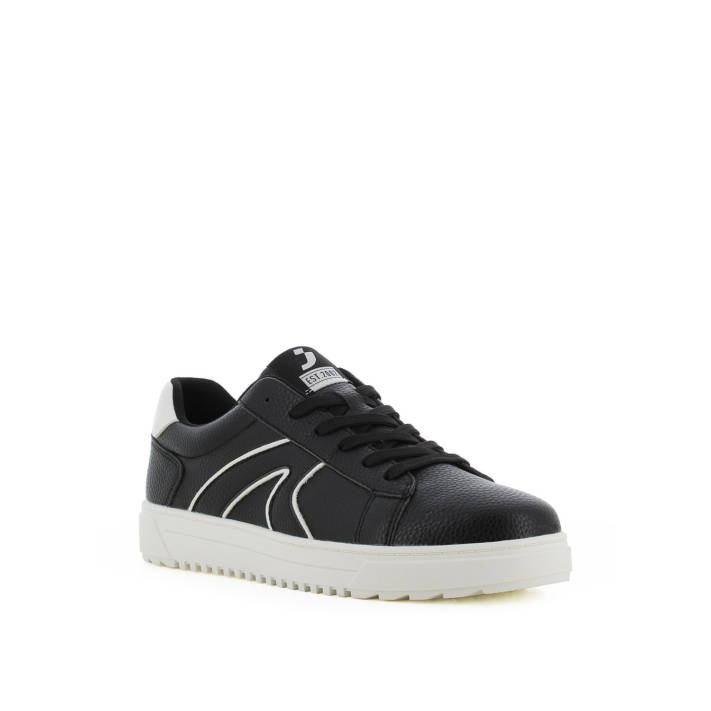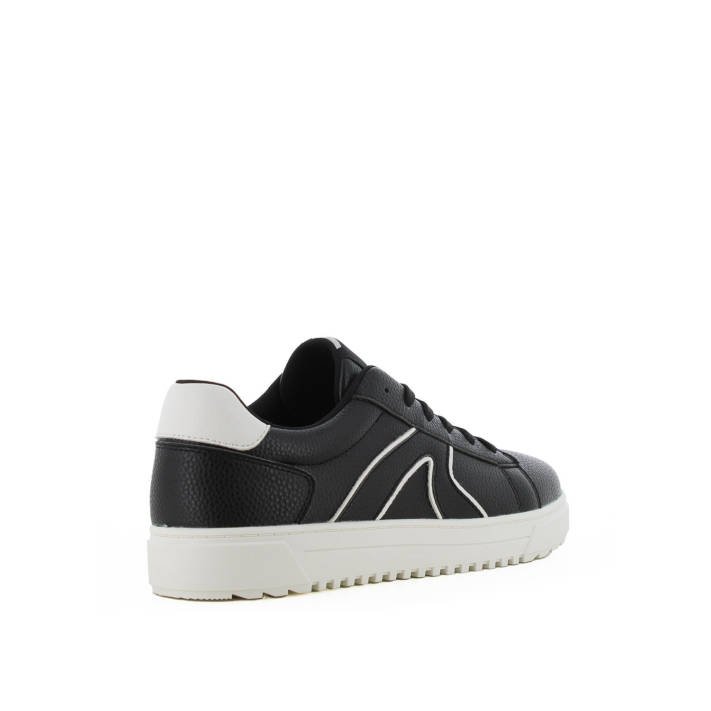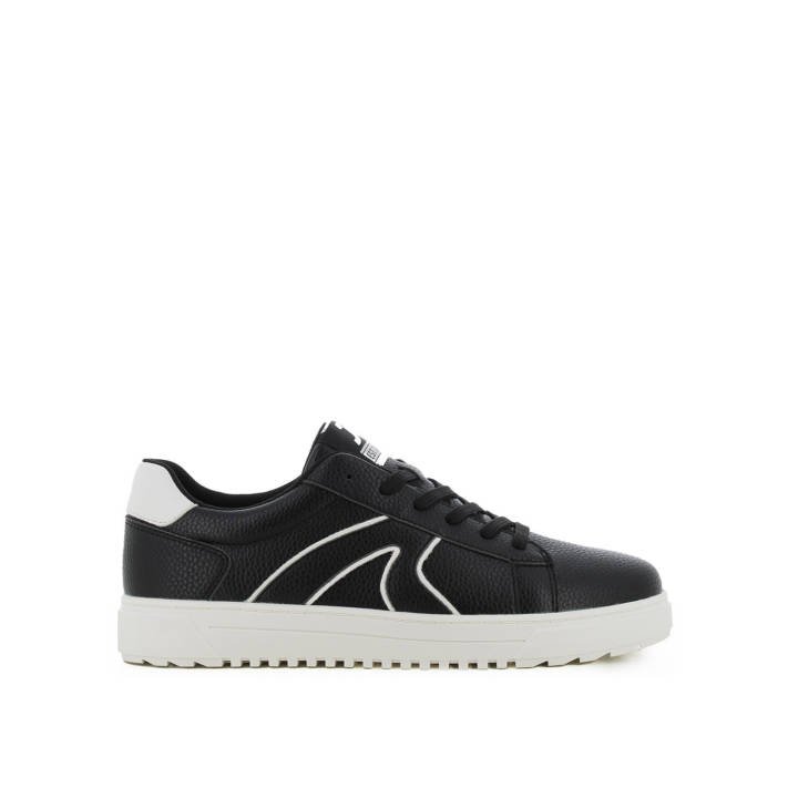Men’s black sneaker with white details and a white sole for a modern and sporty look. Lace-up fastening ensures a secure and adjustable fit, making it ideal for everyday comfort and casual styling.